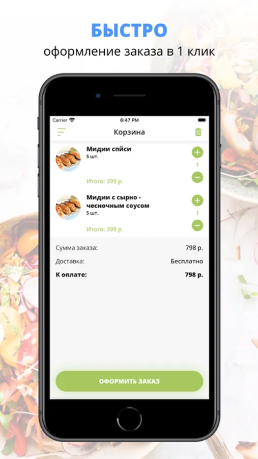 Скачивайте наше приложение, оформляйте заказ и наслаждайтесь любимой едой, где бы Вы ни были! Приятного аппетита!