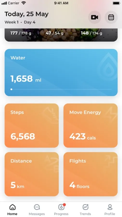 The app integrates with Apple Health to show your daily activity - distance, steps, active energy, and flights to help you better achieve your goals.
