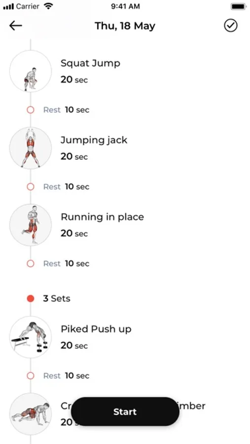 App also uses Apple Health to track energy burned and heart rate during a workout session, if an Apple Watch is used.