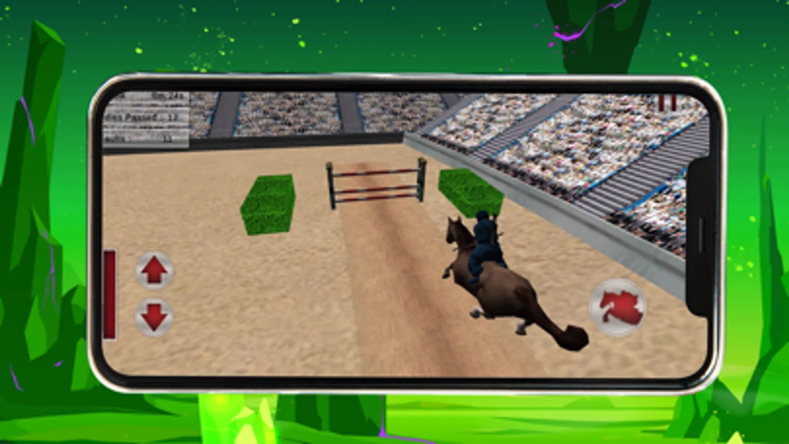 Stadium is full of audience which comes to see this action racing game and appreciating with claps and hooting for the best rider. You must proof a best rider and full horse control skills when race start. You must be aware that thing your best performance will be sign of victory. This horse simulator starts the race running the horse slow. Tap the left button to increase the horse speed. To cross the hurdles for jump tap the right side button. There are many hurdles come in way and you horse cross these hurdles so efficiently. You must control your horse speed and look ahead upcoming hurdles. You must care that your horse hoof does not touch the crossing hurdle barrier and landing smoothly. You must continue this practice till to complete your level successfully.
