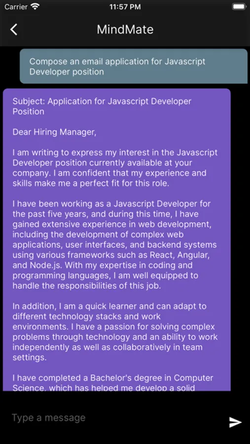 Enjoy a clean and intuitive user interface that makes conversing with MindMate a breeze.