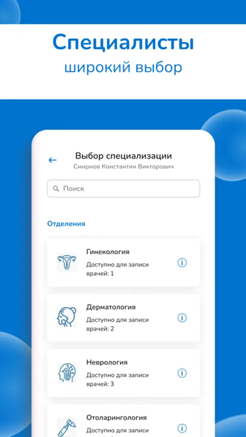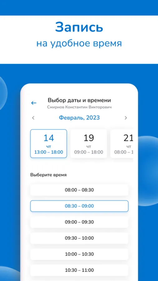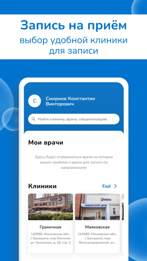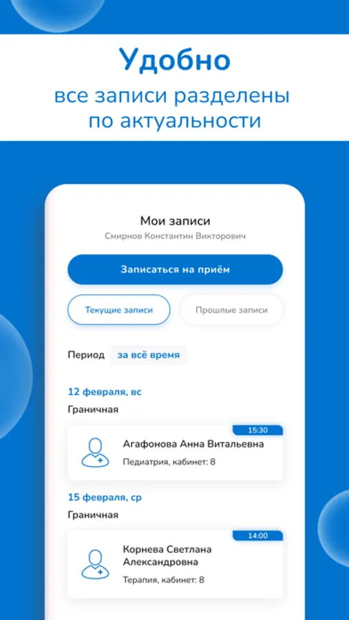 • Расписание ваших визитов в клиники и информирование о записи на приём;