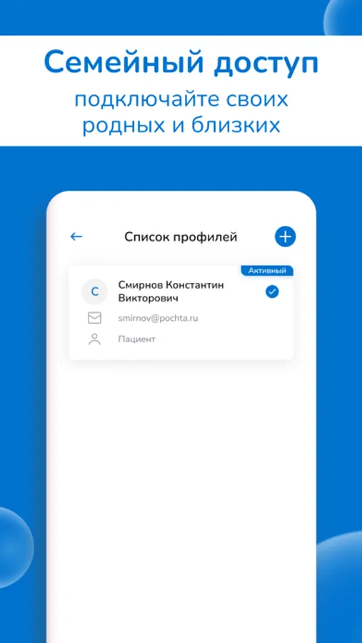 • Доступ к результатам анализов, диагностике, заключения и назначения лечения;