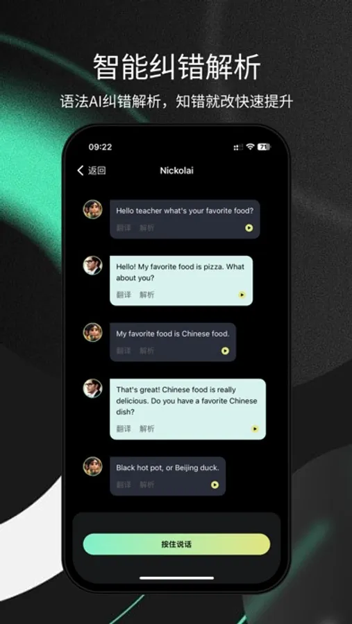 语法智能纠错解析,知错就改快速。AI老师会跟根据发言分析并告知句子中使用了哪些语法,是否有语法错误并帮你改正。