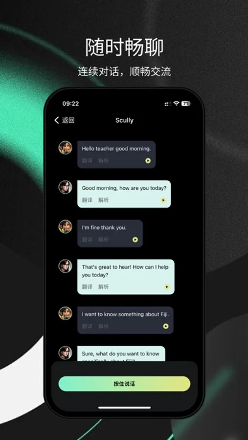 加入【天天口语】与最先进的AI老师一起练习口语对话,告别社恐、告别紧张、告别昂贵的线下对话学习费用,Wana AI帮助你轻松、自信地练习英语口语