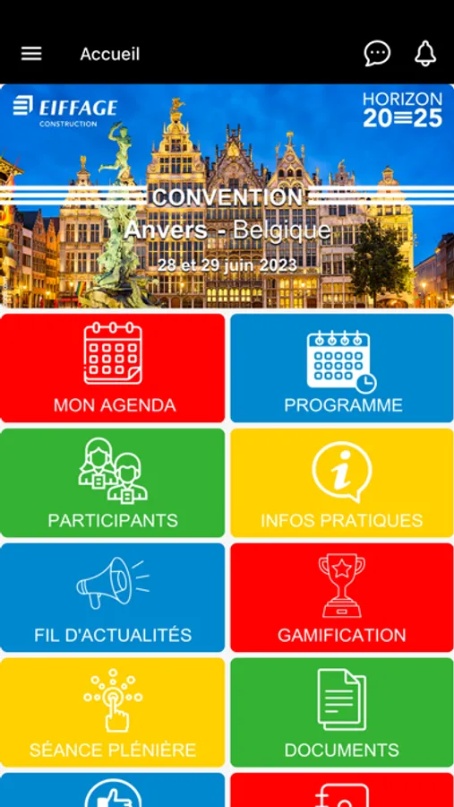 Ceci est l'application officielle dédiée à la convention Eiffage Construction à Anvers. Elle sera utile et obligatoire à votre participation et embarque toutes les fonctionnalités nécessaires : Programme, informations pratiques, liste de participants, fil d'actualités, Interactivité pour la plénière.