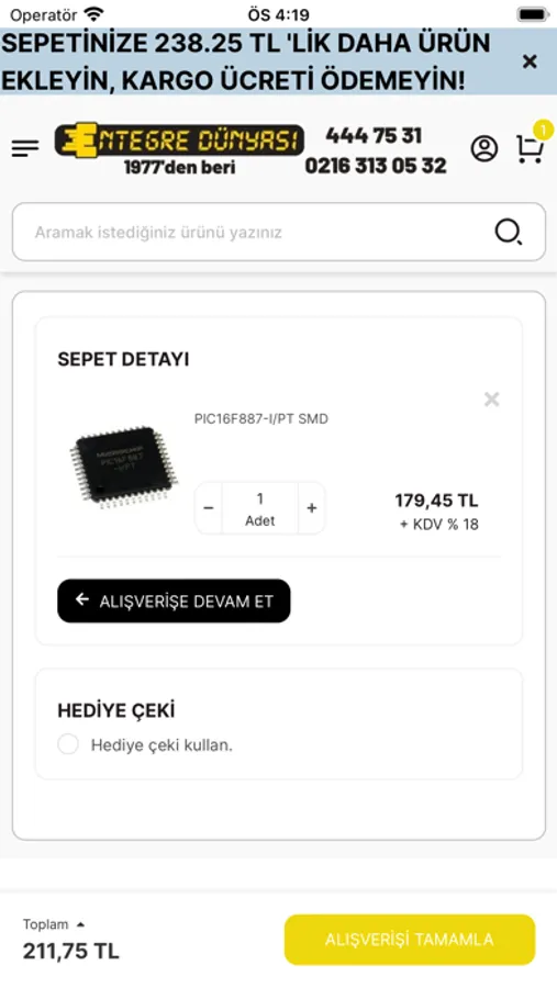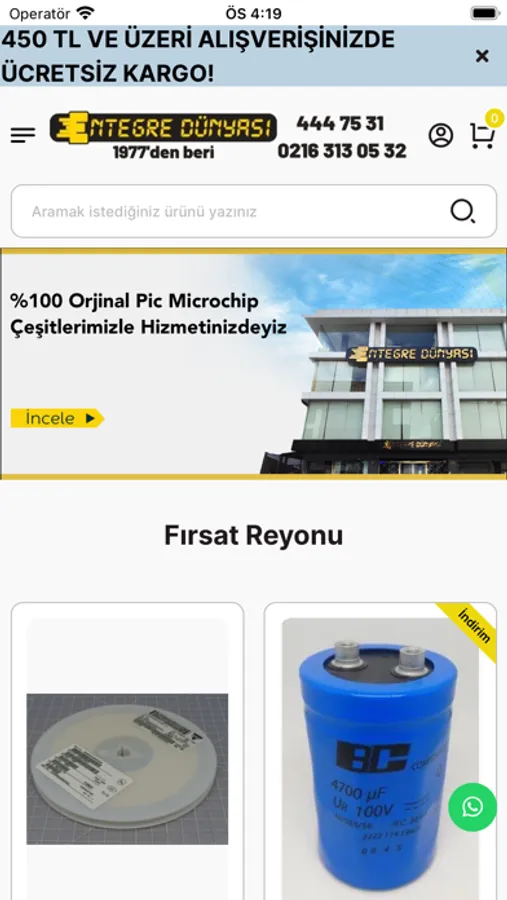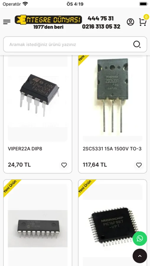 Mobil uygulamamızda Mosfet, Entegre, Varistör, Kondansatör, Röle, Klemens, Direnç, Mikroişlemci, Microcontroller, Voltaj Regülatörü, Display, SMD, LCD Ekran, Diyot, Mikrodenetleyici, Bobin ve Transistör gibi binlerce kalem ürün bulunmaktadır. Türkiye'nin en büyük elektronik komponent satış ağı artık elinizin altında!