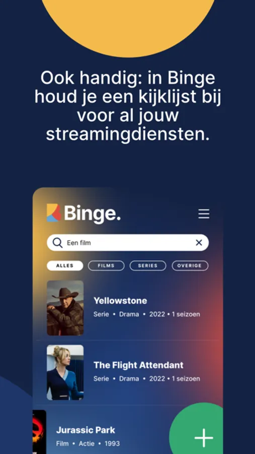 Ook handig: in Binge houd je een kijklijst bij voor al jouw streamingdiensten. Al je favoriete series en films in één handig overzicht, maakt niet uit bij welke streamingdienst ze te zien zijn.