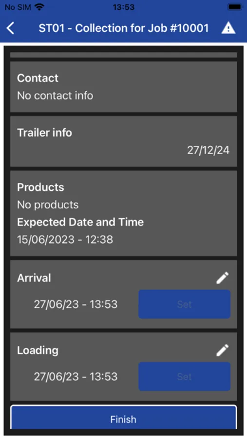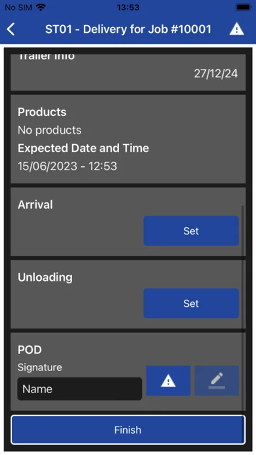 Allows the driver to confirm each work instruction (Task) with various timestamps, comments and images.