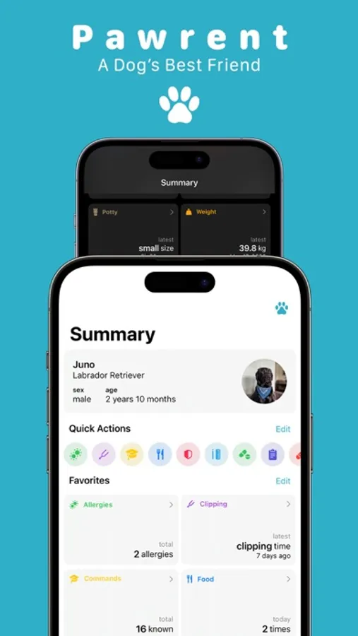 And there's more – Pawrent empowers you to track essential grooming activities like showers and nail clipping, ensuring every aspect of your dog's well-being is covered. Plus, you'll get the chance to create your own unique Pawrent badge with personalized stats showcasing just how well your dog is doing.