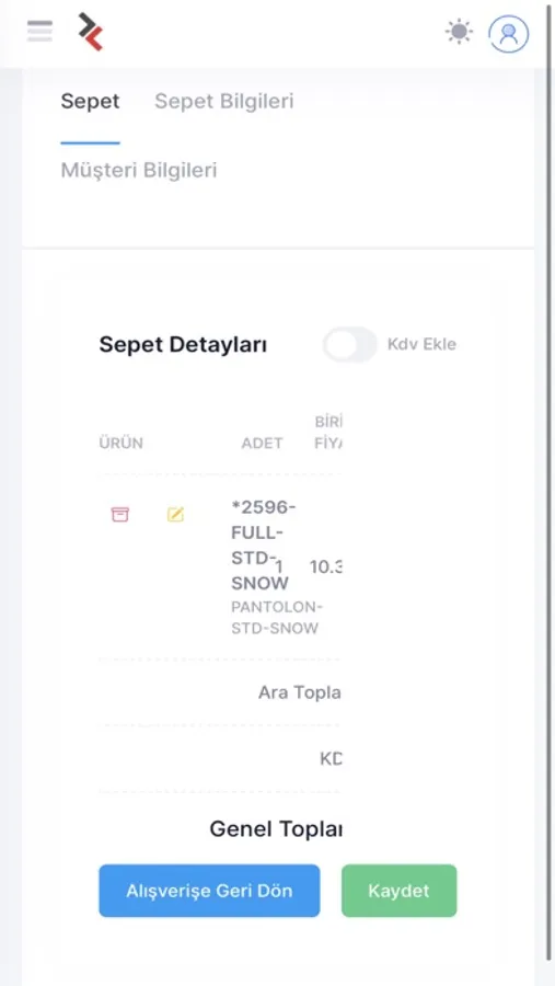 * Sepetinizi kaydeder kaydetmez Redex Erp de diğer süreçleri tamamlayabilirsiniz.