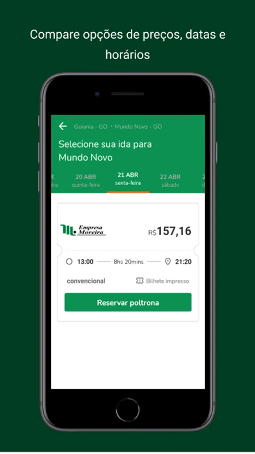 Aplicativo da Empresa Moreira para venda de passagens rodoviárias.
