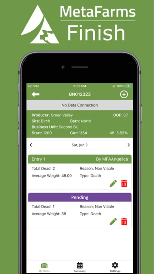 Swine herd mobile application designed specifically for capturing data at the barn site level to send real time results back to the MetaFarms’ Ag platform allowing for quicker and more accurate informed decision making.