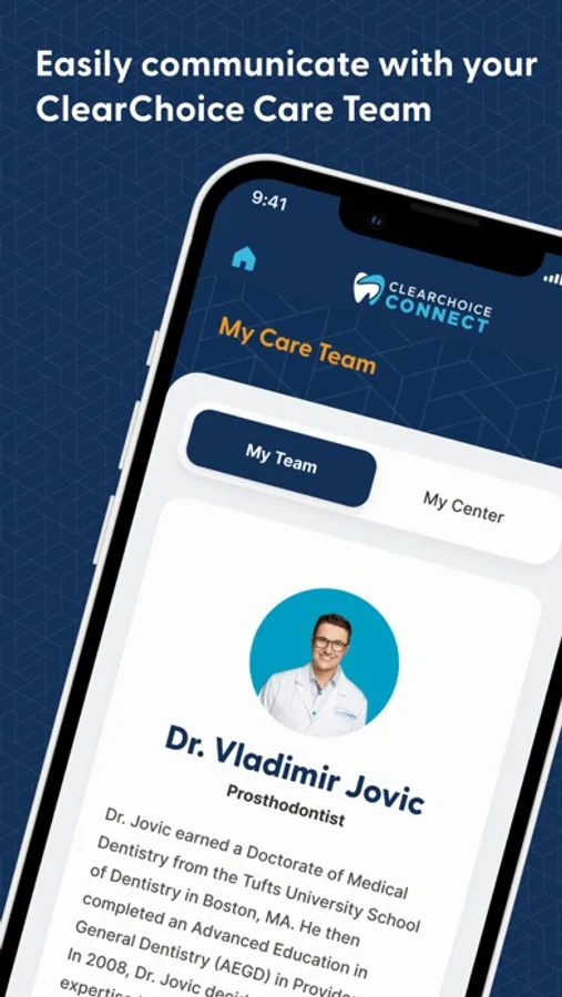 ClearChoice Connect is a practical, on-the-go tool to follow your dental implant treatment progress and communicate with your ClearChoice Dental Implants Center team from your pocket. ClearChoice Connect delivers helpful resources for tracking your oral health journey, including, an overview of your customized treatment path, direction to and contact information for your ClearChoice center, details about your care team, and more.