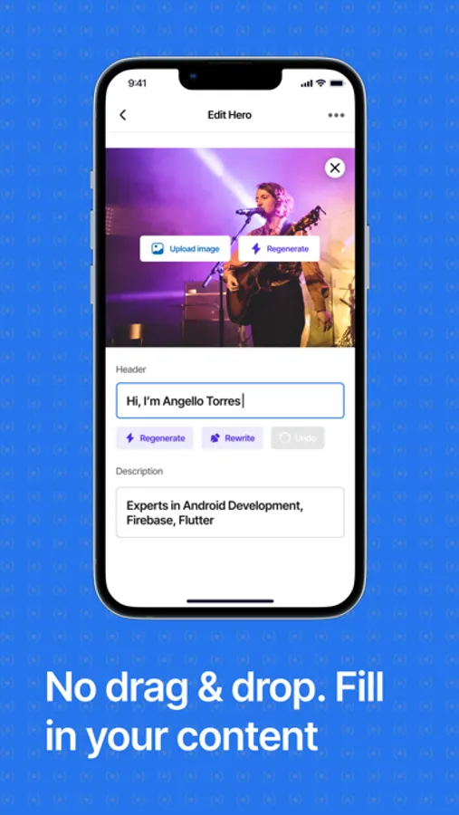 Generate your dream website faster than brewing your morning coffee. No learning curve, no coding, and no design skills needed. Do this with just a few taps on your mobile phone.