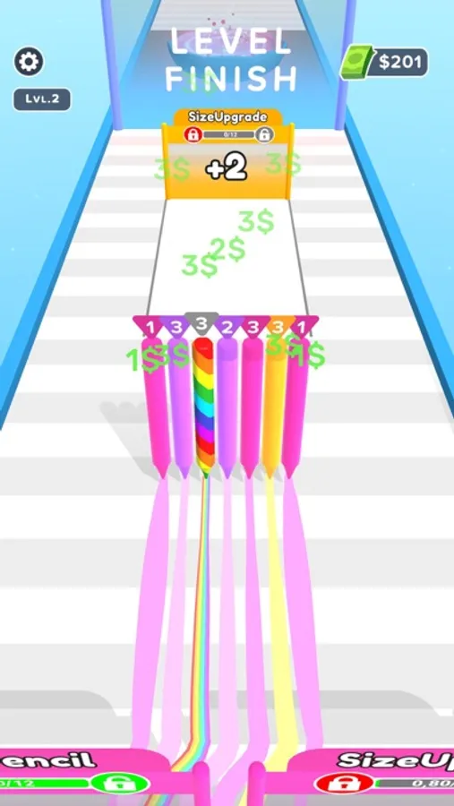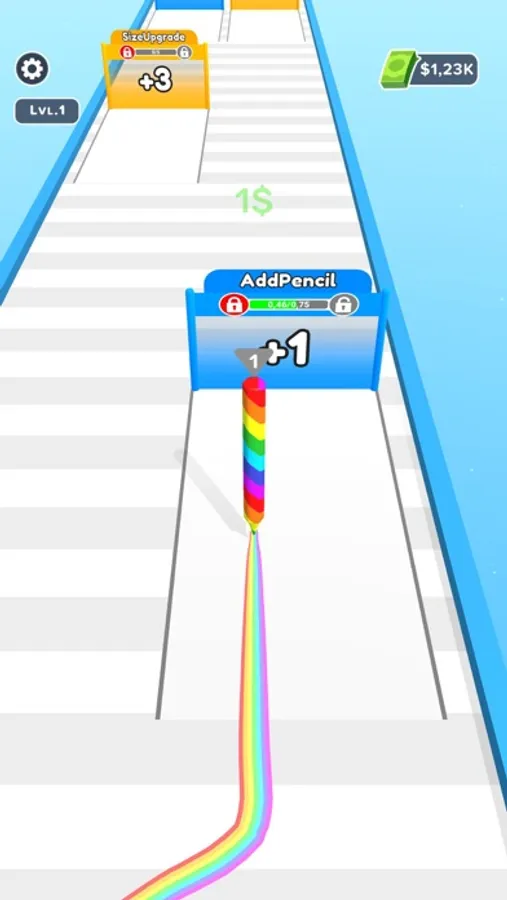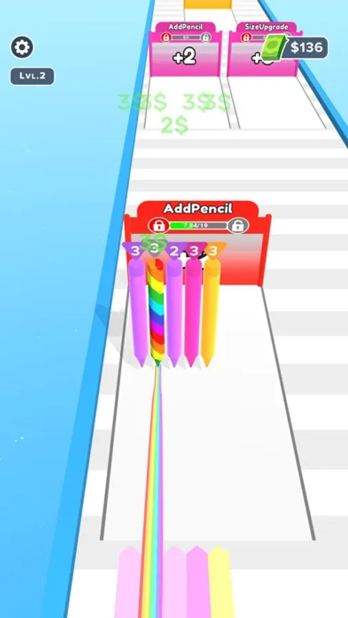 Draw lines, Collect pencils and upgrade them. Merge pencils and grow your pencil.