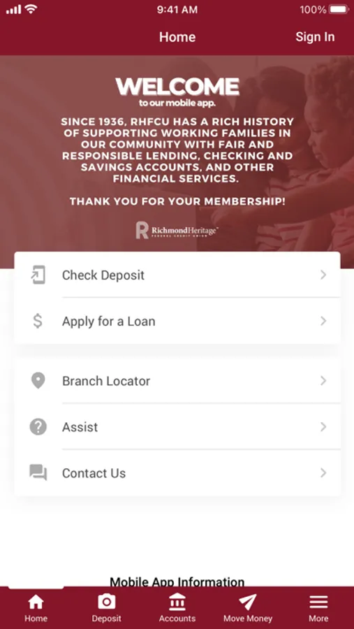 Richmond Heritage Federal Credit Union Mobile provides members convenient access to our website, mobile check deposit, mobile banking, branch and contact information.
