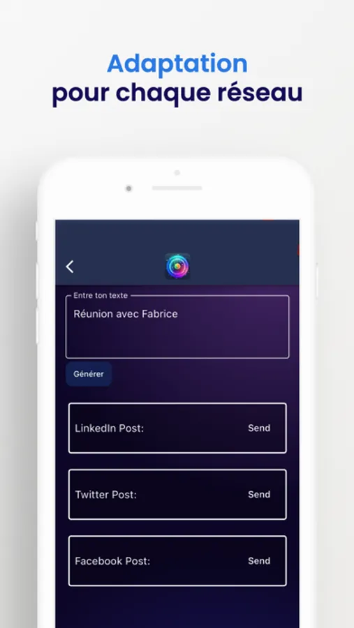 Adapté à chaque plateforme : Obtenez des posts adaptés aux caractéristiques uniques et aux bonnes pratiques de LinkedIn, Twitter et Facebook.