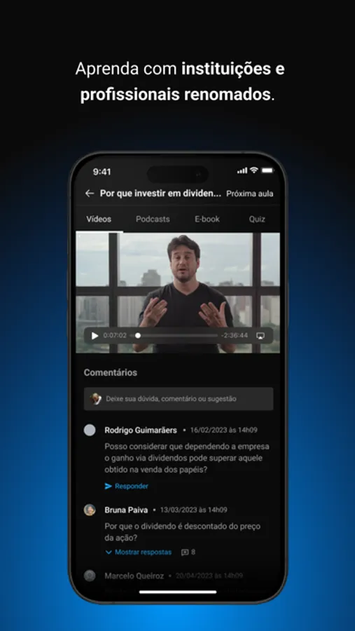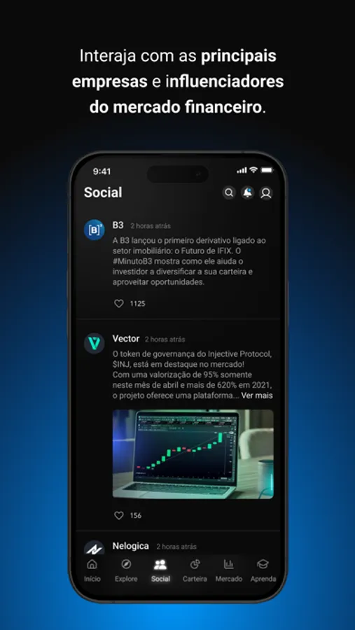 2. Rede social: Participe de debates em uma comunidade diversa, formada por empresas, investidores e especialistas. Obtenha insights valiosos e fique atualizado sobre as tendências do mercado financeiro.