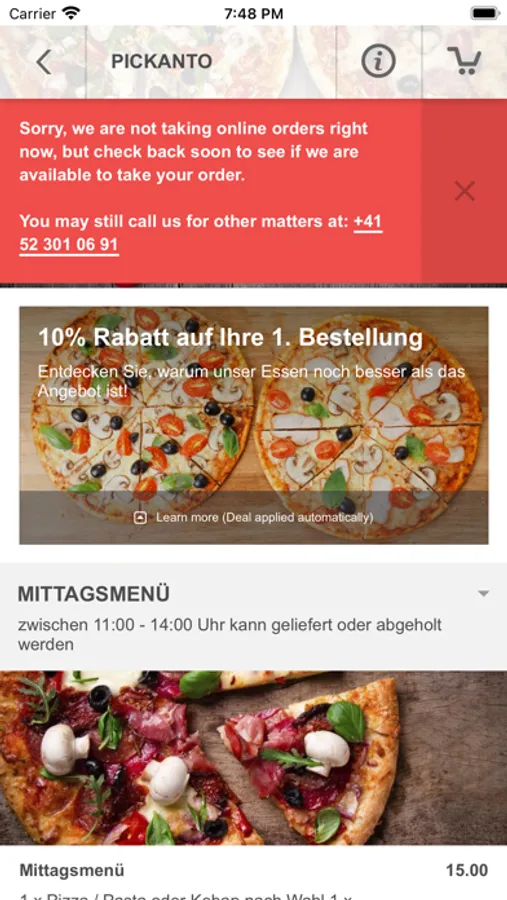- Online-Essensbestellung optimiert für Ihr mobiles Gerät.