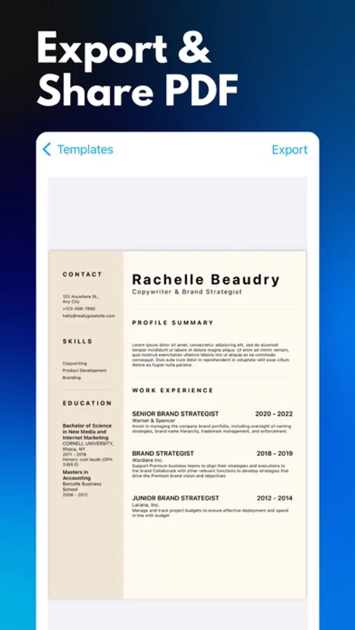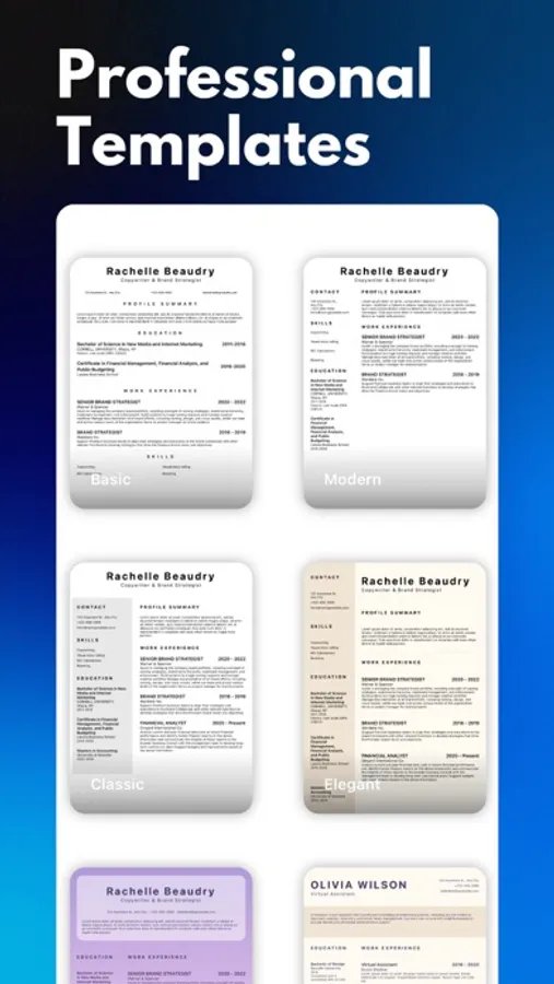* Professional Resume Templates: Choose from a collection of meticulously designed templates to suit your style and industry.