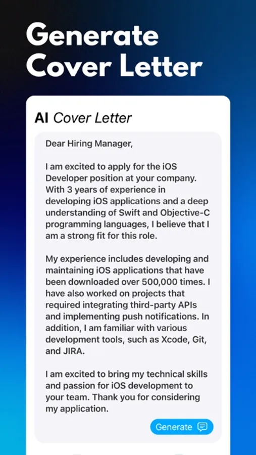 * Personalized Cover Letters: Receive a tailored cover letter based on your qualifications and the specific job you're applying for.