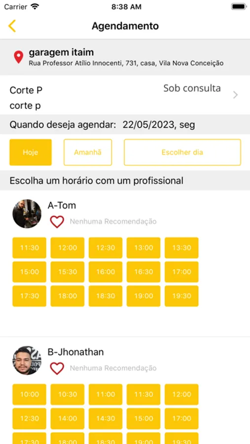 Na busca, você pode escolher seu profissional preferido, serviço, o melhor horário e a data de forma rápida e prática.