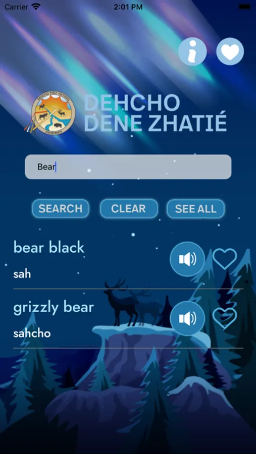 This is a dictionary app for South Slavey, the language of the Dehcho Dene Zhatié, with audio recordings from native speakers.