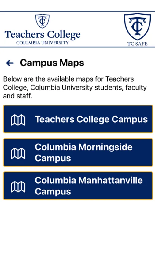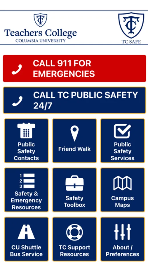 TC Safe is the official safety app of Teachers College, Columbia University. It is the only app that integrates with Teachers College, Columbia University's safety and security systems. TC Public Safety has worked to develop a unique app that provides students, faculty and staff with added safety on the Teachers College, Columbia University campus. The app will send you important safety alerts and provide instant access to campus safety resources.