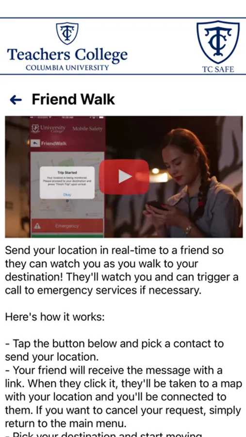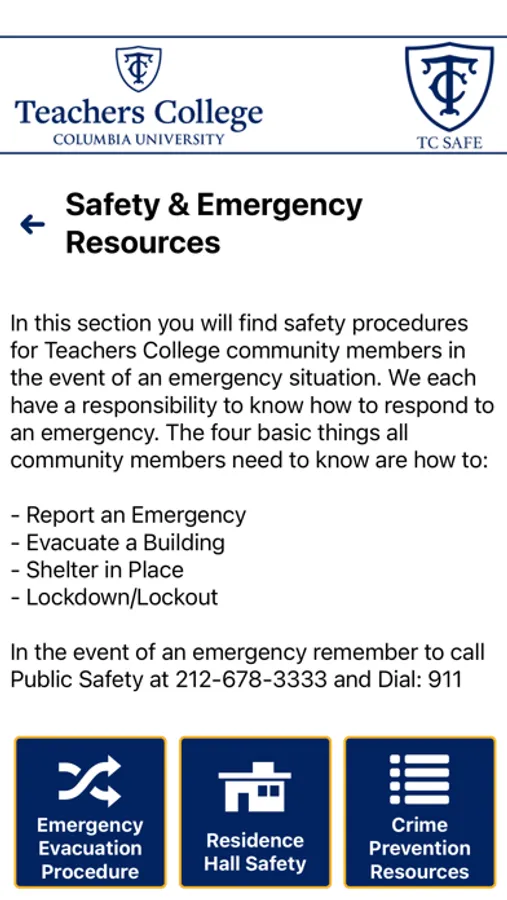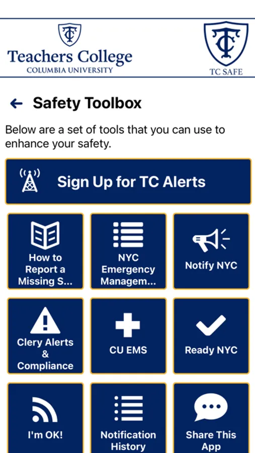 - Safety Notifications: Receive instant notifications and instructions from Teachers College, Columbia University safety when on-campus emergencies occur.