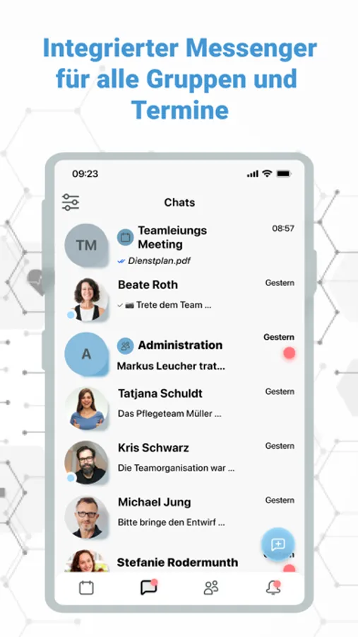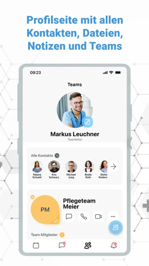 MED.ONE vereint einen eins zu eins Messenger mit effektiven Werkzeugen zur Einrichtung und Organisation von Teams.