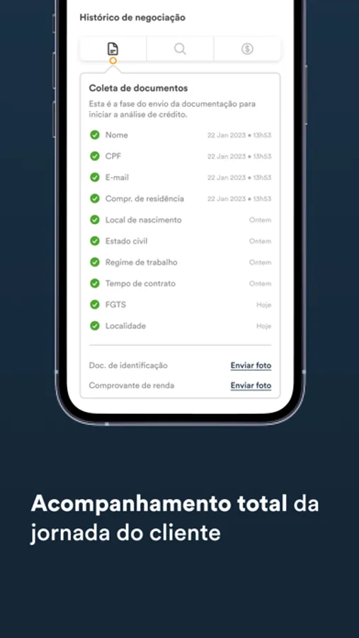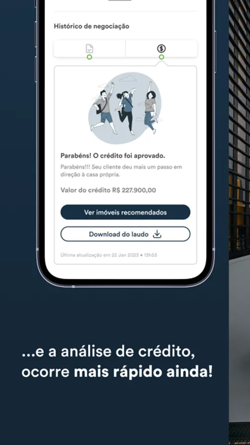 Corretor, você é notificado em cada etapa do processo, além de receber recomendações de empreendimentos e o laudo completo da análise de crédito do seu cliente.
