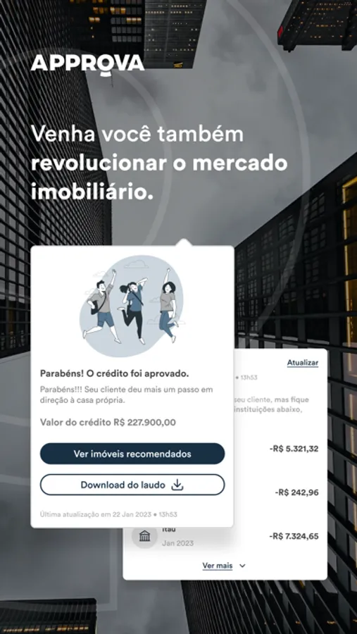 O aplicativo Approva Cred é a solução perfeita para acompanhar toda a jornada do seu cliente na palma da mão, onde e quando você quiser. Fazendo análises de crédito em poucos minutos, integrado ao nosso marketplace com mais de 40 mil unidades e materiais exclusivos para alavancar as suas vendas.