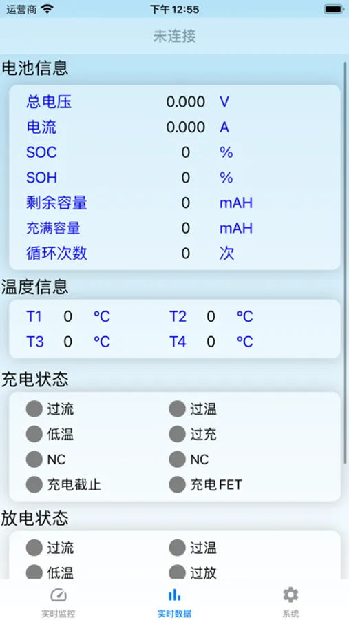 2. 实时数据,数据的形式,实时查看电池的各项信息。