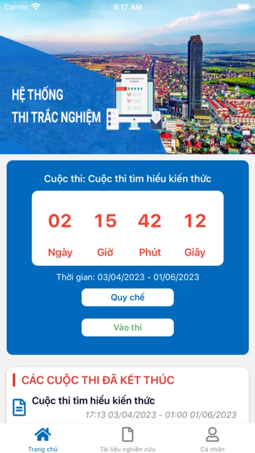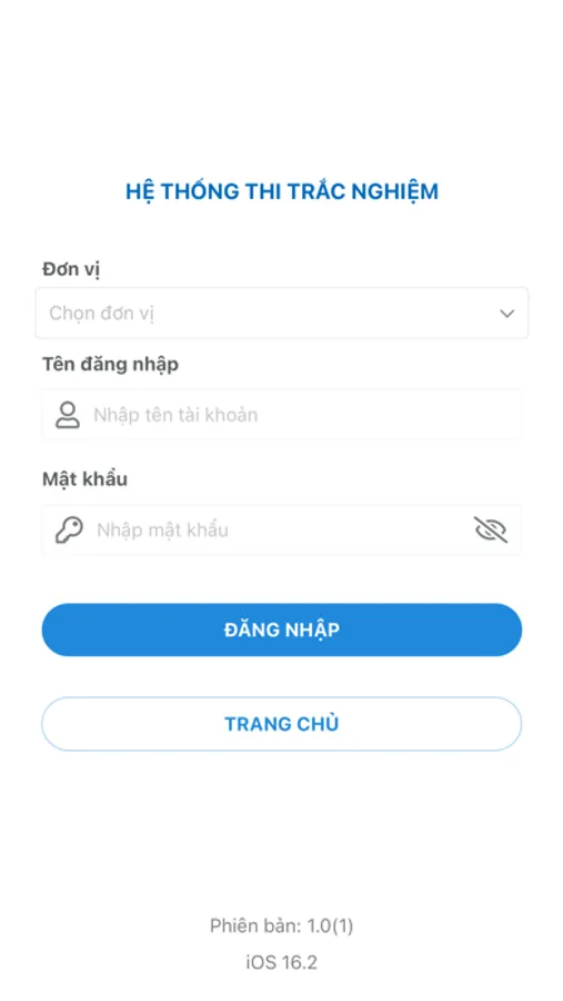 Ứng dụng thi trắc nghiệm trực tuyến cho các đơn vị, làm bài thi trực tuyến, xem quy chế, thông báo