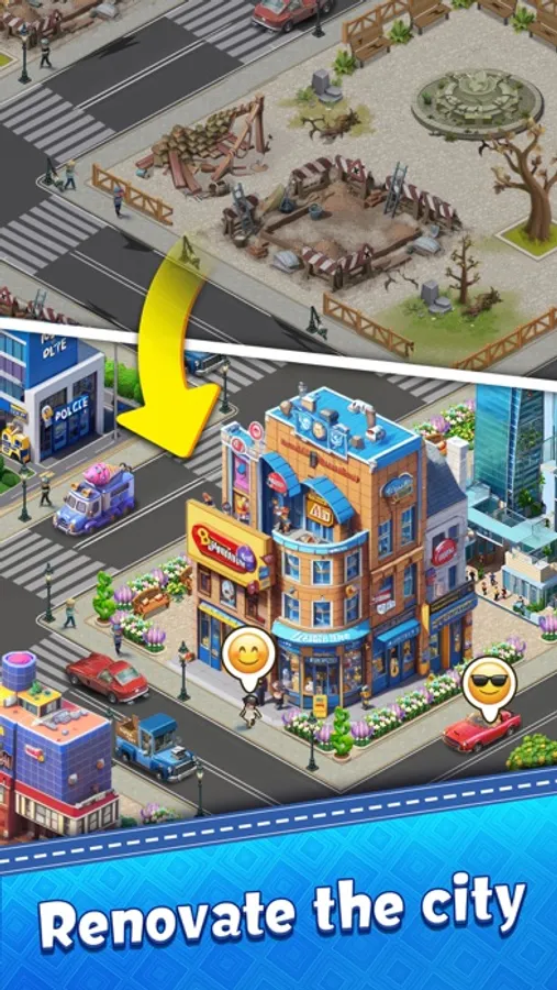 By playing this relaxing city build game, you will match and merge to renovate city buildings, unlock hidden city maps, pick up building debris, building materials. Design and build mansions to create beautiful and bustling city views and become the designer and mayor of your own dream city.