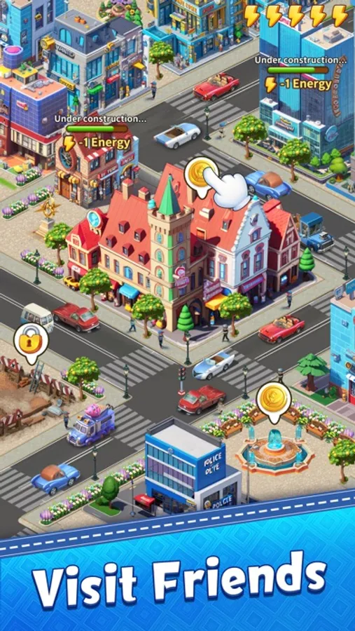 -Unlock various city buildings through the puzzle strategy game of merging objects.