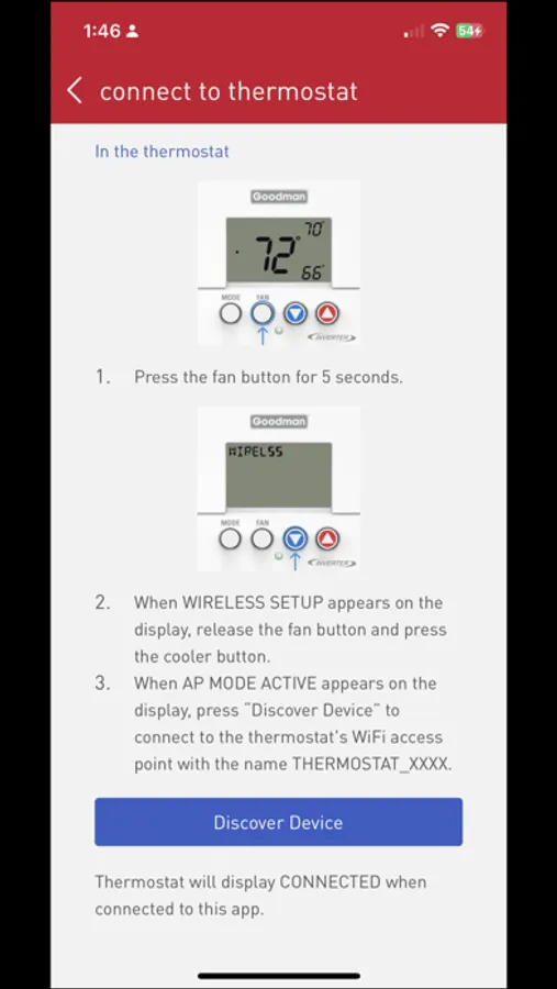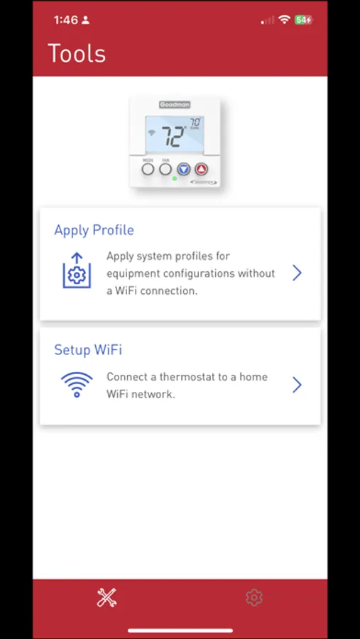 The Goodman Installer App allows users to easily setup and configure Wi-Fi settings for thermostats.