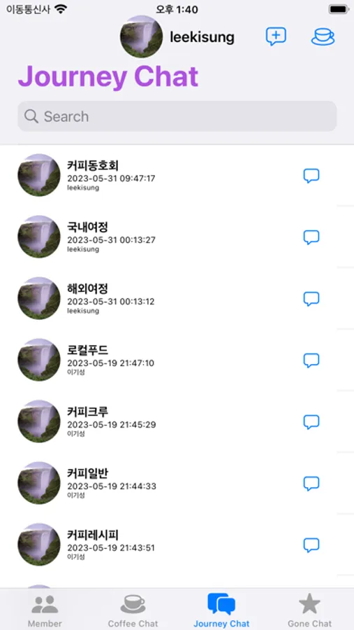 4. Journey Chat : Journey 경험을 등록할 수 있습니다. 과거 경험 내역을 볼 수 있고, 계속 등록을 할 수 있습니다.