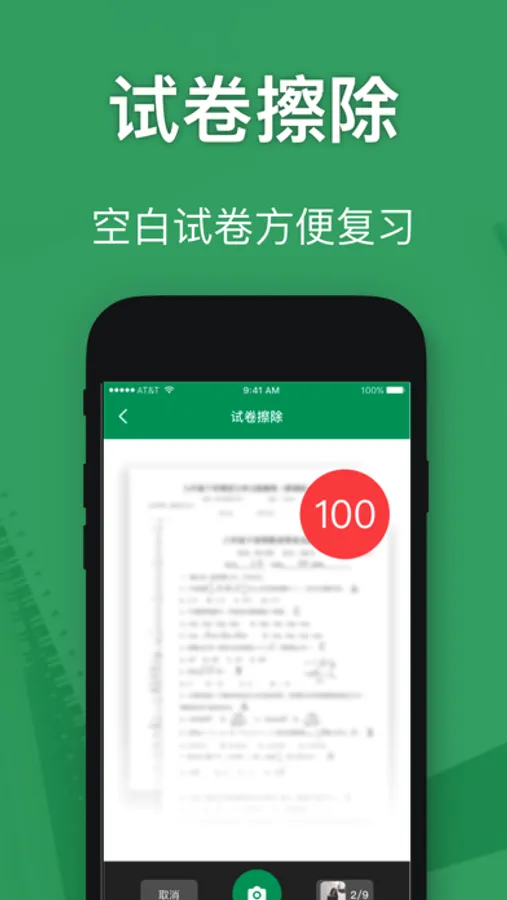 试卷擦除:拍摄一张写有答案的试卷,扫描后即可一键擦除试卷中的答案,还原一张空白的试卷