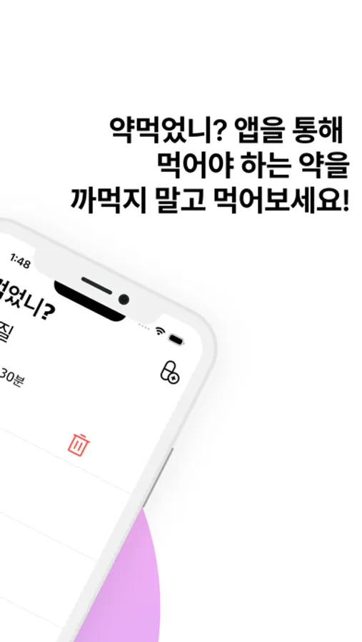 - 복용이 끝났다면 삭제하기 버튼을 눌러 삭제를 하세요!