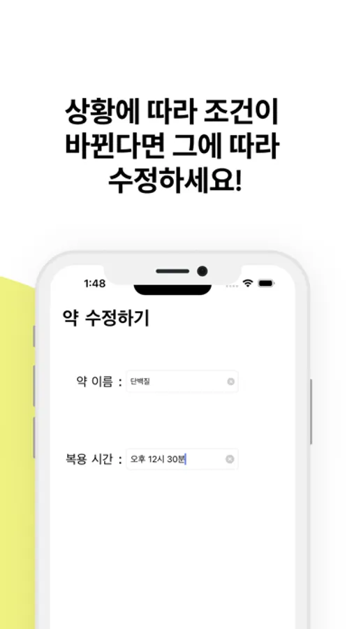 - 수정하기 버튼을 누르면 약 수정하기 페이지가 나오고 수정해야 하는 부분을 수정해 보세요!