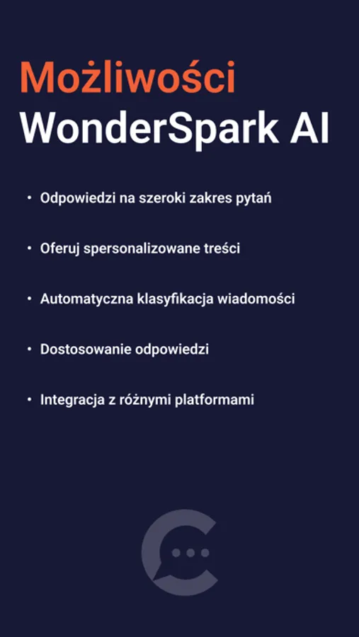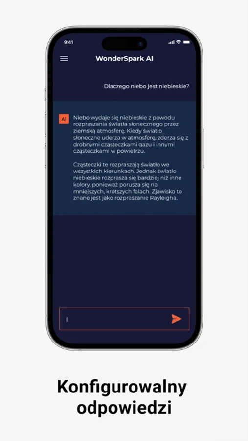 WonderSpark AI to wygodna aplikacja, która pozwala ci komunikować się z sztuczną inteligencją na różnorodne tematy. Nasz innowacyjny smart-bot wykorzystuje zaawansowane technologie głębokiego uczenia się, aby lepiej zrozumieć twoje pytania i dostarczać bardziej precyzyjne i trafne odpowiedzi. Bez względu na to, czym jesteś zainteresowany - od sportu i kultury po naukę i technologię - nasz bot AI zawsze jest gotowy, aby pomóc ci uzyskać informacje, których szukasz.