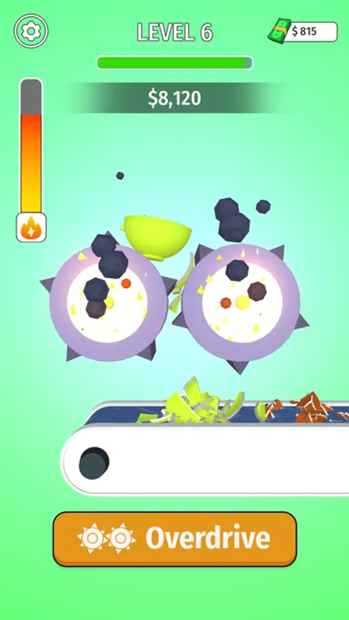 You can increase your grinder speed by Overdrive Button. You must have to be aware from Over Heating the grinders. If heat will goes over than limit then Both grinders will be Exploded and You'll lose the level.