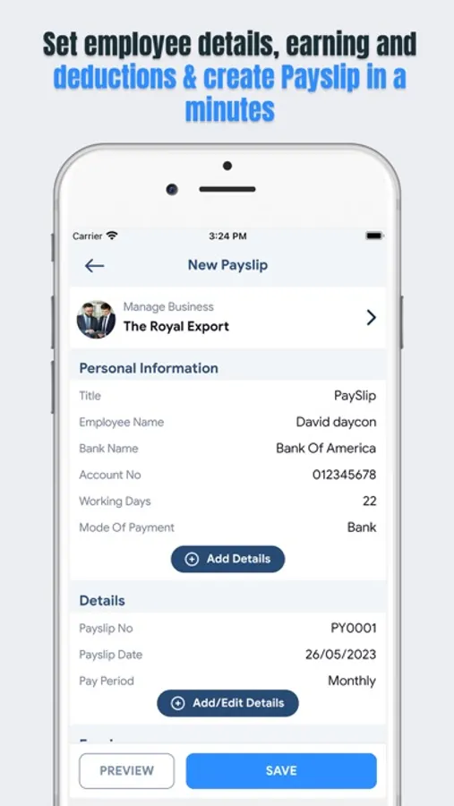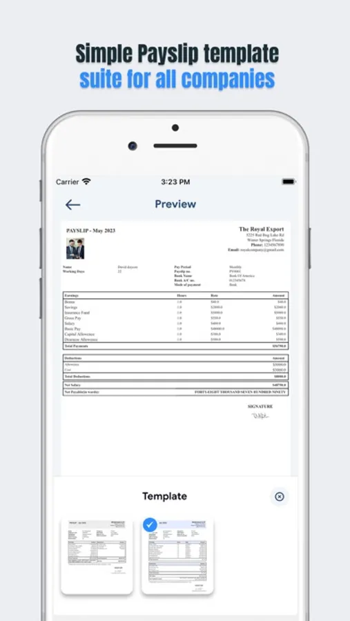 - App can use as Payslip Generator, Paycheck Stub, Employee Wage slip, and Salary statement