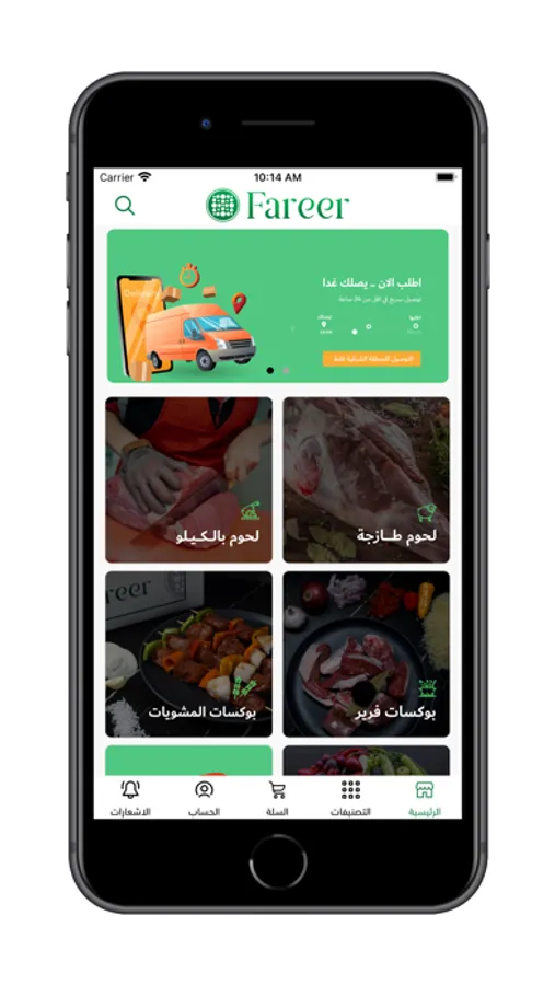 تطبيق "فرير" هو متجر إلكتروني متخصص في بيع اللحوم والخضروات والفواكه. يمكن للمستخدمين تحميل تطبيق "فرير" على هواتفهم الذكية والبدء في التسوق بكل سهولة ويسر.