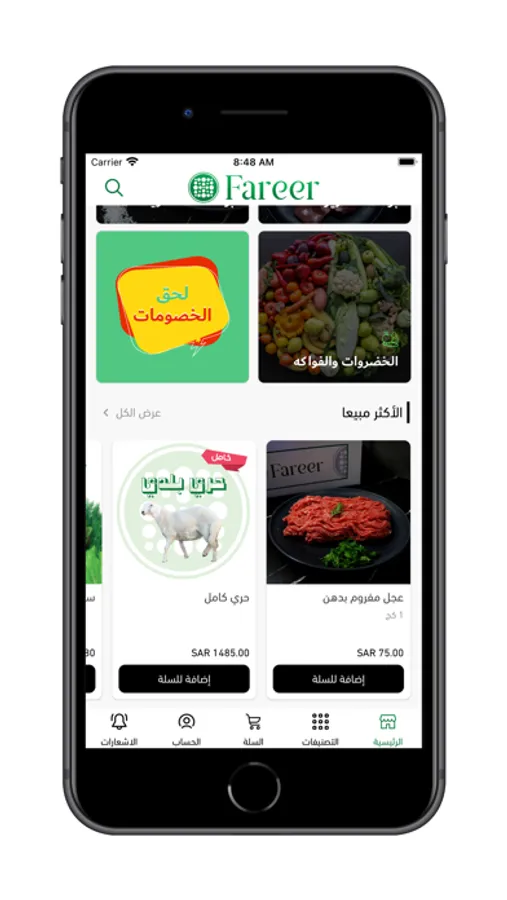باستخدام تطبيق "فرير"، يمكن للمستخدمين الاستمتاع بتجربة تسوق مريحة ومثالية لشراء اللحوم والخضروات والفواكه بجودة عالية وأسعار معقولة.