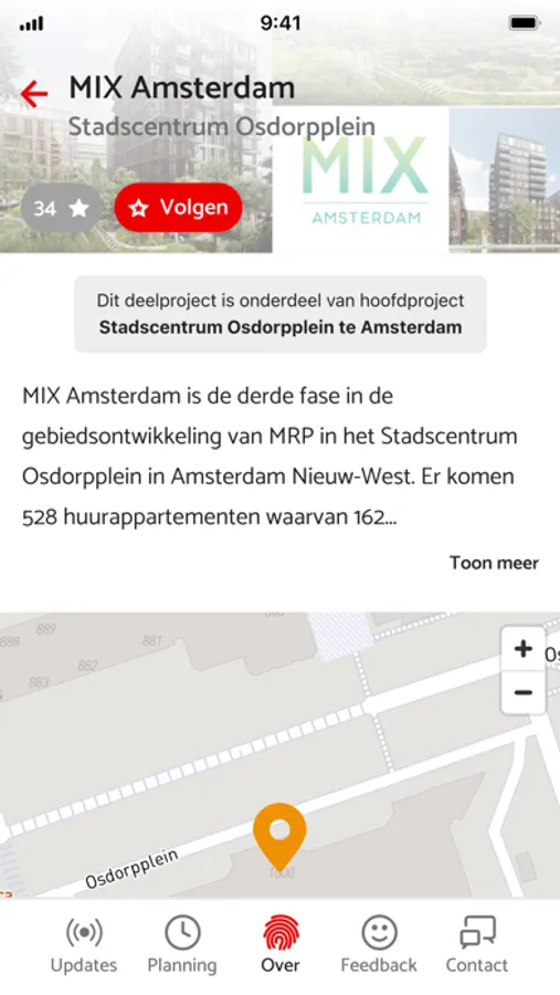 Osdorpplein is het bruisende stadscentrum van Amsterdam Nieuw-West aan de Sloterplas. Deze kleurrijke plek is omgeven door water en groen. Het is een plek waar mensen van alle leeftijden en culturen zich thuis voelen en zichzelf kunnen zijn. We gaan het uitbreiden en vernieuwen tot een compleet centrum. Met meer betaalbare woningen, een plek voor een nieuwe Meervaart, een nieuwe gracht met bruggen, een langere promenade langs de Sloterplas en meer maatschappelijke voorzieningen. Verschillende partijen werken samen aan de vernieuwing van het Stadscentrum Osdorpplein. Door middel van deze App houden we iedereen op de hoogte over de vernieuwing en ontwikkelingen van Stadscentrum Osdorpplein.