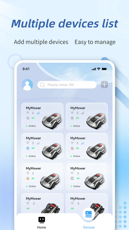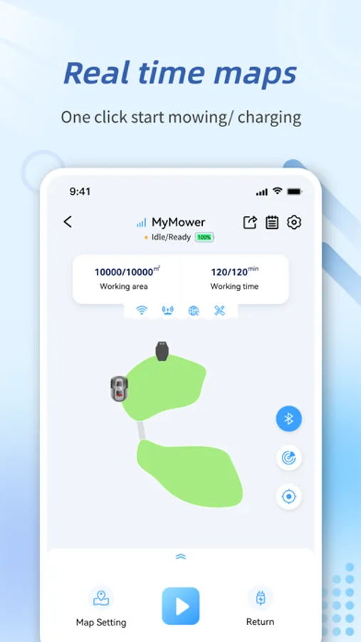 • View the working status and battery level of the smart lawn mower in real time