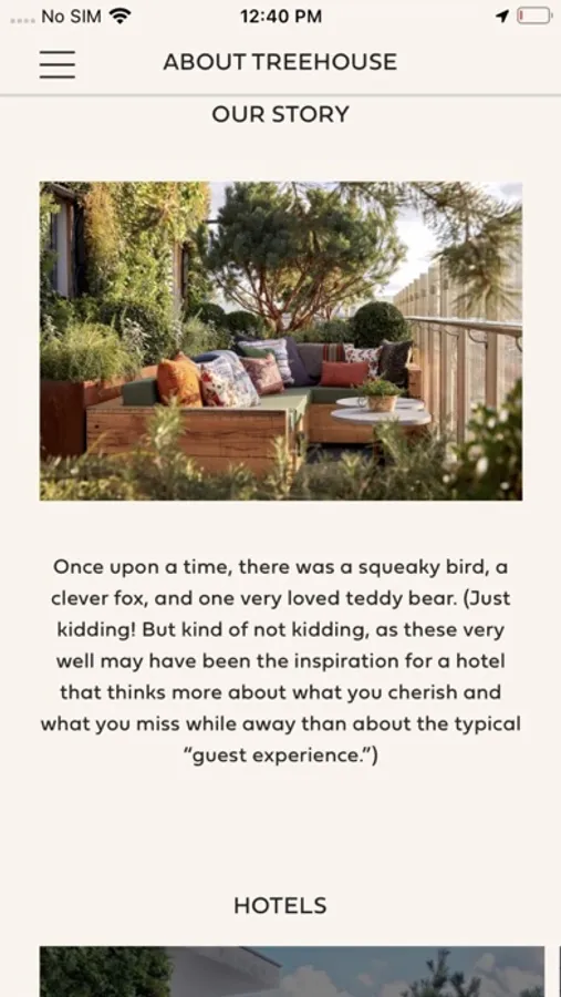 The Treehouse Hotels app puts you in charge of your own adventures at Treehouse Hotels. Manage your stay, order in-room picnics, control your tv, explore local hotspots, reserve a table, chat with the Treehouse crew and much more.
